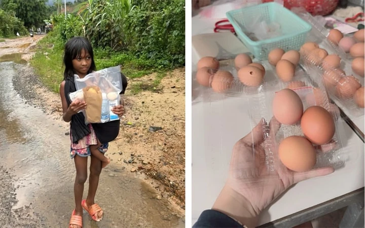 Tại Cam Ranh (Khánh Hòa), một cô gái trẻ chia sẻ câu chuyện cùng mẹ luộc gần 25.000 quả trứng và chuẩn bị 150 thùng nước suối chỉ trong vỏn vẹn 3 ngày để gửi tới bà con vùng bão lũ ở Cam Phước, Khánh Sơn, Diên Khánh và Phú Yên.