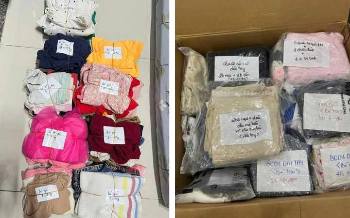 Ở nhiều tỉnh thành, quần áo quyên góp được phân loại cẩn thận, ghi rõ giới tính, độ tuổi, cân nặng, để ai nhận là dùng được ngay. Những tờ giấy note nhỏ, những chiếc túi được xếp gọn gàng chính là minh chứng cho sự chu đáo và thương yêu từ những trái tim hướng về miền Trung trong những ngày này.
